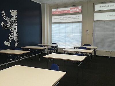 Großzügige Unterrichtsräume mit modernster Technik (Smartboard), einen Aufenthaltsbereich und ein zugängliches W-LAN bieten dir den entsprechenden Rahmen für eine erfolgreiche Ausbildung.