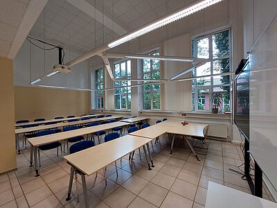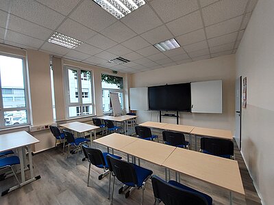 Unser Standort verfügt über eine gute technische Ausstattung und moderne Unterrichtsräume. Ergänzt wird das Ganze durch unser Lern-Management-System (LMS).