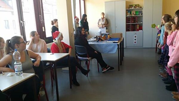 Die Kinder der Klasse 4a bedankten sich bei den angehenden Kinderpflegern mit Weihnachtsliedern und ließen sich die mitgenommenen Weihnachtsplätzchen bestimmt noch gut schmecken …