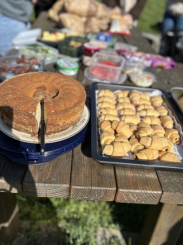 Am Zielort gab es ein Picknick zur allgemeinen Stärkung, zu dem alle Teilnehmenden mit größeren und kleineren, teils selbstgemachten Köstlichkeiten beitrugen. Alle Hundebesitzer*innen waren herzlich dazu eingeladen, ihren Hund mitzubringen. Dieser Einladung folgten nicht wenige, sodass die Hunde den Auszubildenden als Fotomotiv definitiv den Rang abliefen.